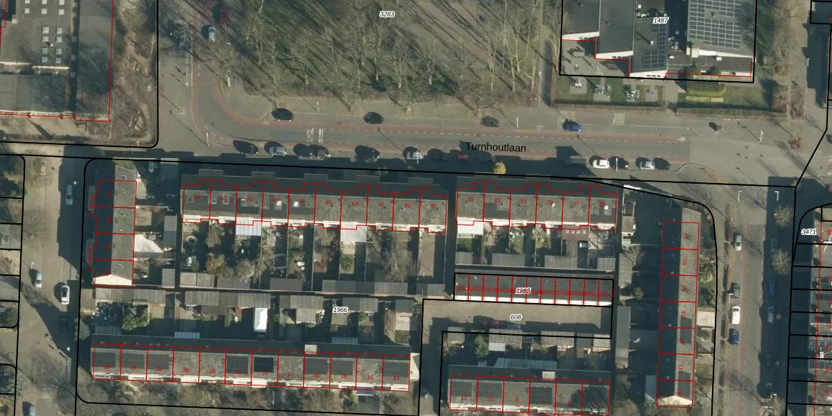 Turnhoutlaan 39 is gelegen op kadastraal perceel WSL01M1966. Deze kadastrale aanduiding is uniek en wordt gebruikt door het Kadaster om eigendomsrechten en andere zakelijke rechten vast te leggen. Het perceel maakt onderdeel uit van de kadastrale gemeente Woensel.