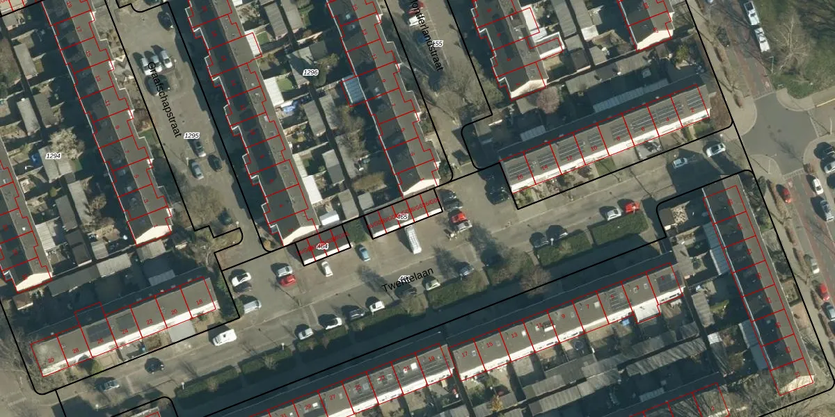Twentelaan 16-G02 is gelegen op kadastraal perceel WSL01R465. Deze kadastrale aanduiding is uniek en wordt gebruikt door het Kadaster om eigendomsrechten en andere zakelijke rechten vast te leggen. Het perceel maakt onderdeel uit van de kadastrale gemeente Woensel.