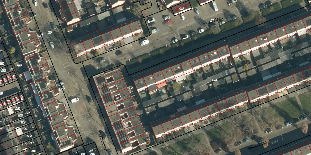Twentelaan 33 is gelegen op kadastraal perceel WSL01R338. Deze kadastrale aanduiding is uniek en wordt gebruikt door het Kadaster om eigendomsrechten en andere zakelijke rechten vast te leggen. Het perceel maakt onderdeel uit van de kadastrale gemeente Woensel.