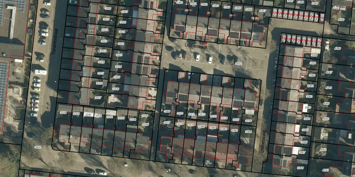 Udinestraat 15 is gelegen op kadastraal perceel WSL01C3369. Deze kadastrale aanduiding is uniek en wordt gebruikt door het Kadaster om eigendomsrechten en andere zakelijke rechten vast te leggen. Het perceel maakt onderdeel uit van de kadastrale gemeente Woensel.