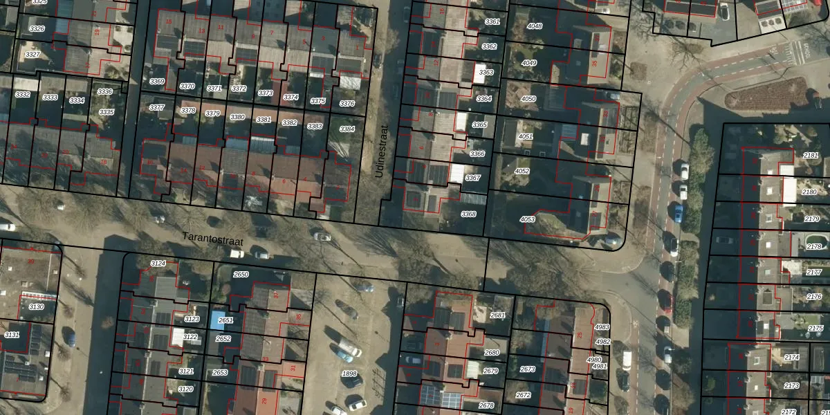 Het perceel waarop Udinestraat 2 staat heeft een oppervlakte van 269 m². Dit is een middelgroot perceel. De perceeloppervlakte wordt geregistreerd door het Kadaster. Gedetailleerde informatie over de maten van dit perceel kunt u vinden in het rapport Kadastrale kaart met maatvoering van Udinestraat 2.