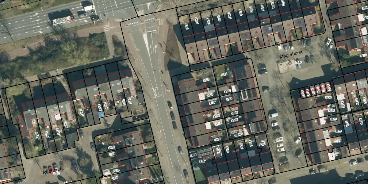 Gebruik de zoekbalk of klik op een perceel voor informatie over de adressen binnen dit perceel.