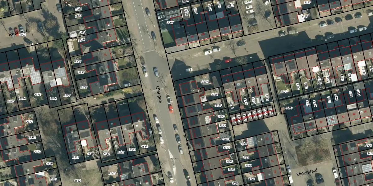 Gebruik de zoekbalk of klik op een perceel voor informatie over de adressen binnen dit perceel.