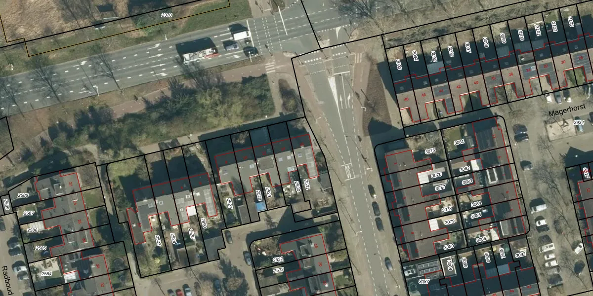 Gebruik de zoekbalk of klik op een perceel voor informatie over de adressen binnen dit perceel.