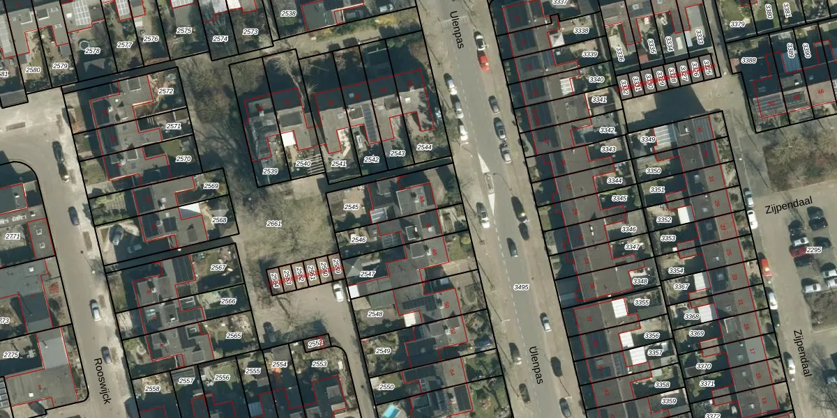 Gebruik de zoekbalk of klik op een perceel voor informatie over de adressen binnen dit perceel.