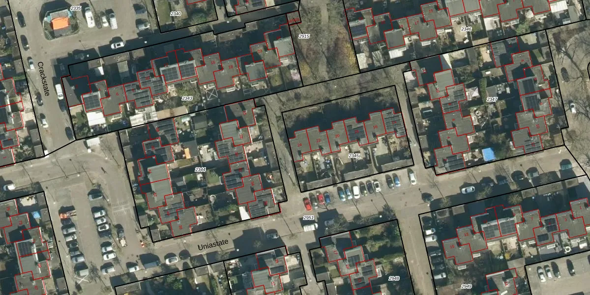 Het perceel waarop Uniastate 24 staat heeft een oppervlakte van 1094 m². Dit is een zeer groot perceel. De perceeloppervlakte wordt geregistreerd door het Kadaster. Gedetailleerde informatie over de maten van dit perceel kunt u vinden in het rapport Kadastrale kaart met maatvoering van Uniastate 24.