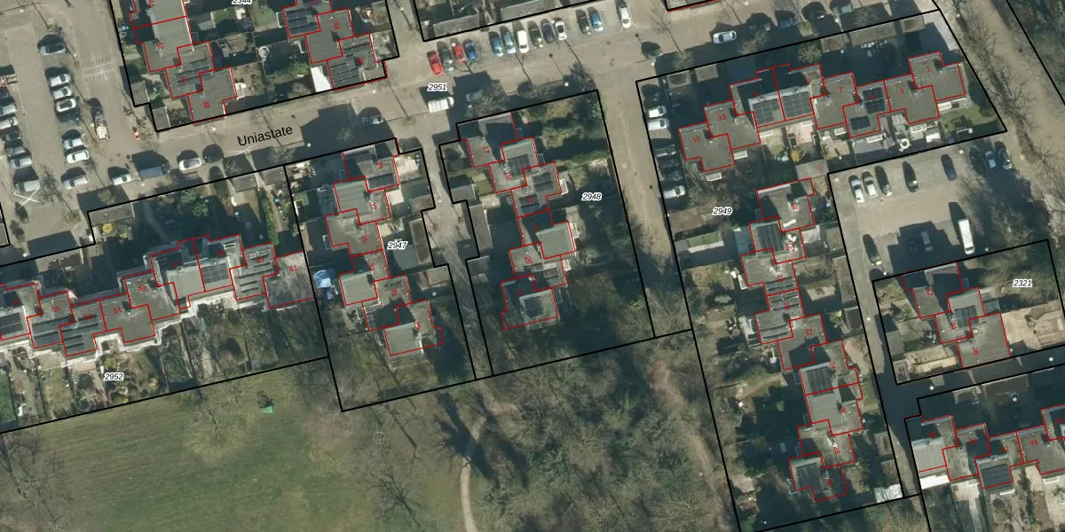 Het perceel waarop Uniastate 25 staat heeft een oppervlakte van 1442 m². Dit is een zeer groot perceel. De perceeloppervlakte wordt geregistreerd door het Kadaster. Gedetailleerde informatie over de maten van dit perceel kunt u vinden in het rapport Kadastrale kaart met maatvoering van Uniastate 25.