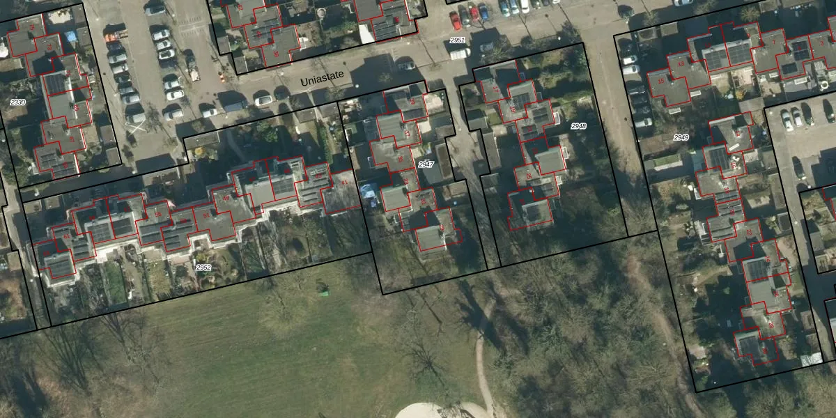 Het perceel waarop Uniastate 31 staat heeft een oppervlakte van 1179 m². Dit is een zeer groot perceel. De perceeloppervlakte wordt geregistreerd door het Kadaster. Gedetailleerde informatie over de maten van dit perceel kunt u vinden in het rapport Kadastrale kaart met maatvoering van Uniastate 31.