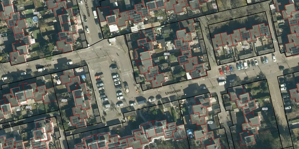 Het perceel waarop Uniastate 40 staat heeft een oppervlakte van 1966 m². Dit is een zeer groot perceel. De perceeloppervlakte wordt geregistreerd door het Kadaster. Gedetailleerde informatie over de maten van dit perceel kunt u vinden in het rapport Kadastrale kaart met maatvoering van Uniastate 40.