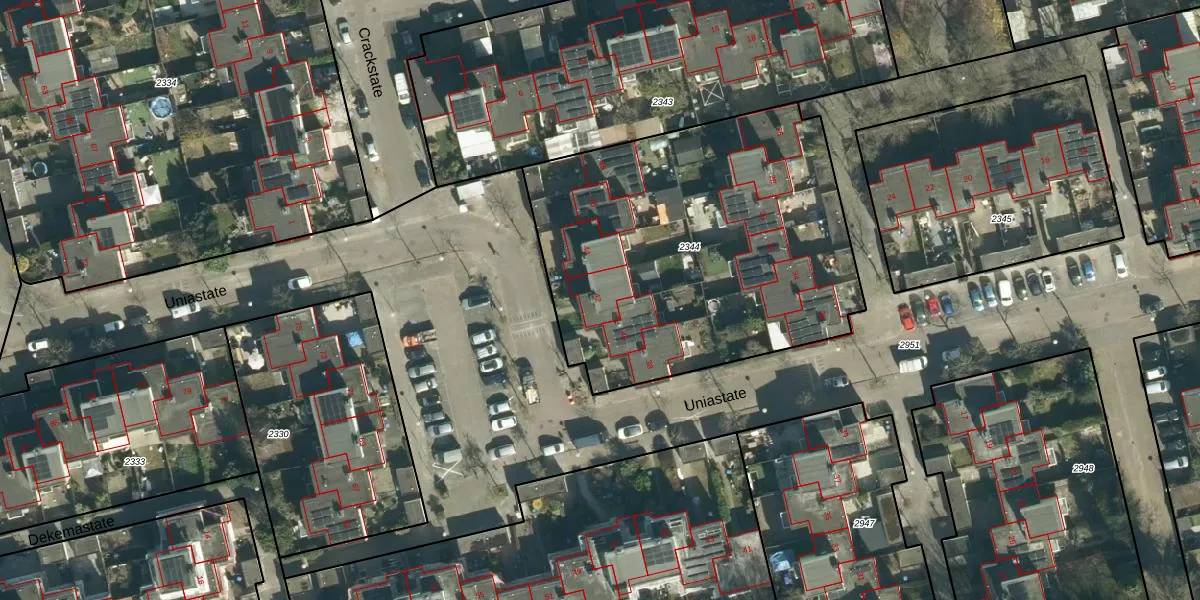 Het perceel waarop Uniastate 42 staat heeft een oppervlakte van 1966 m². Dit is een zeer groot perceel. De perceeloppervlakte wordt geregistreerd door het Kadaster. Gedetailleerde informatie over de maten van dit perceel kunt u vinden in het rapport Kadastrale kaart met maatvoering van Uniastate 42.