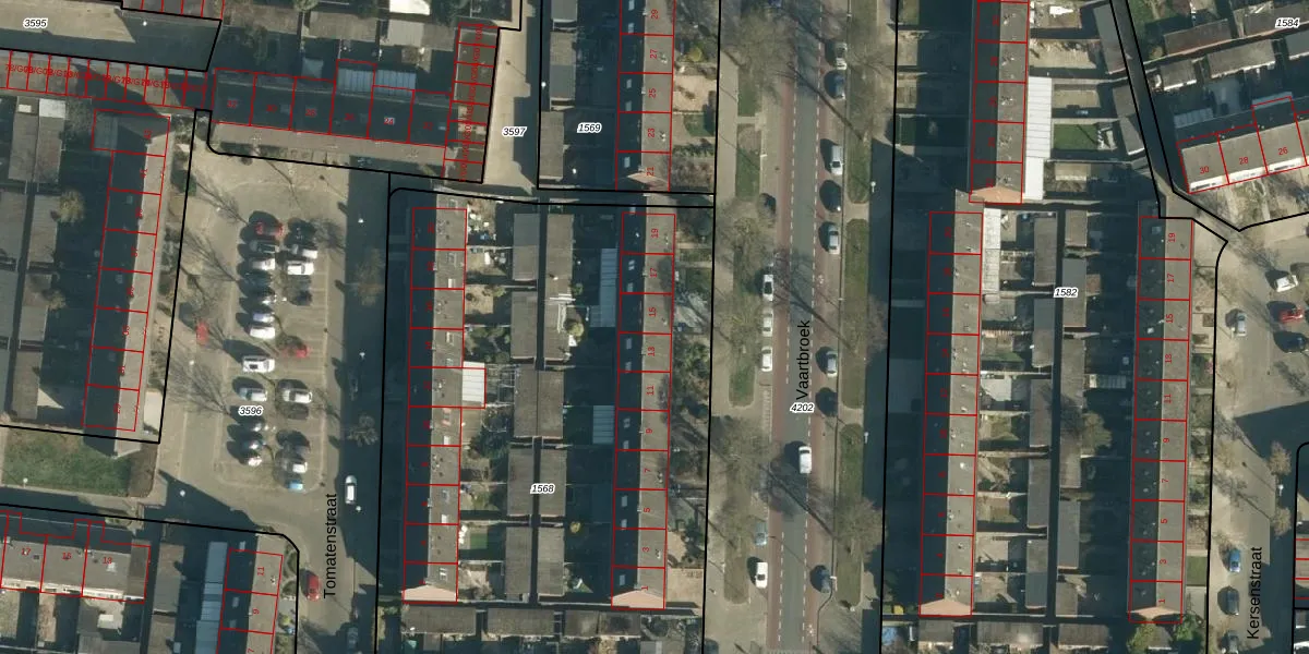 Vaartbroek 15 is gelegen op kadastraal perceel WSL01C1568. Deze kadastrale aanduiding is uniek en wordt gebruikt door het Kadaster om eigendomsrechten en andere zakelijke rechten vast te leggen. Het perceel maakt onderdeel uit van de kadastrale gemeente Woensel.