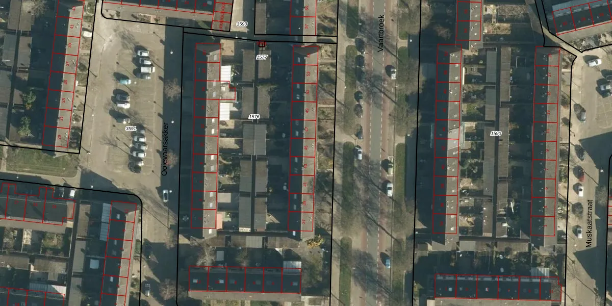 Vaartbroek 45 is gelegen op kadastraal perceel WSL01C1576. Deze kadastrale aanduiding is uniek en wordt gebruikt door het Kadaster om eigendomsrechten en andere zakelijke rechten vast te leggen. Het perceel maakt onderdeel uit van de kadastrale gemeente Woensel.