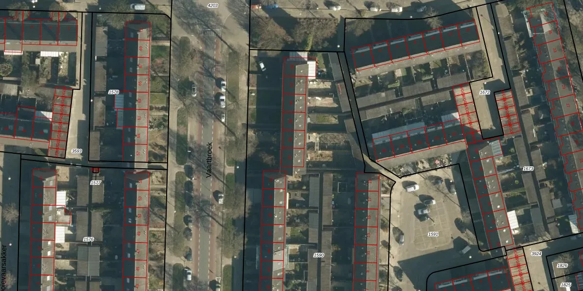 Het perceel waarop Vaartbroek 56 staat heeft een oppervlakte van 5930 m². Dit is een zeer groot perceel. De perceeloppervlakte wordt geregistreerd door het Kadaster. Gedetailleerde informatie over de maten van dit perceel kunt u vinden in het rapport Kadastrale kaart met maatvoering van Vaartbroek 56.