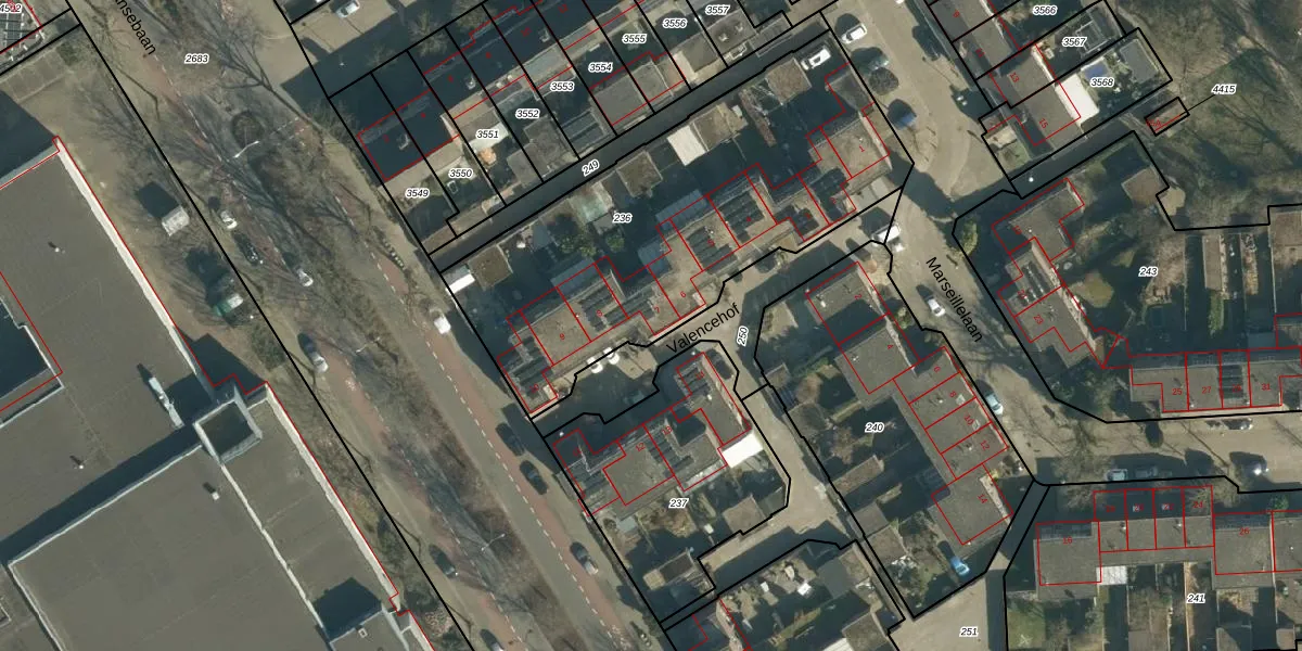 Valencehof 7 is gelegen op kadastraal perceel WSL01S236. Deze kadastrale aanduiding is uniek en wordt gebruikt door het Kadaster om eigendomsrechten en andere zakelijke rechten vast te leggen. Het perceel maakt onderdeel uit van de kadastrale gemeente Woensel.