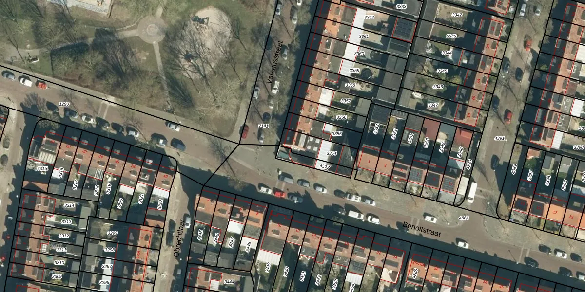 Gebruik de zoekbalk of klik op een perceel voor informatie over de adressen binnen dit perceel.