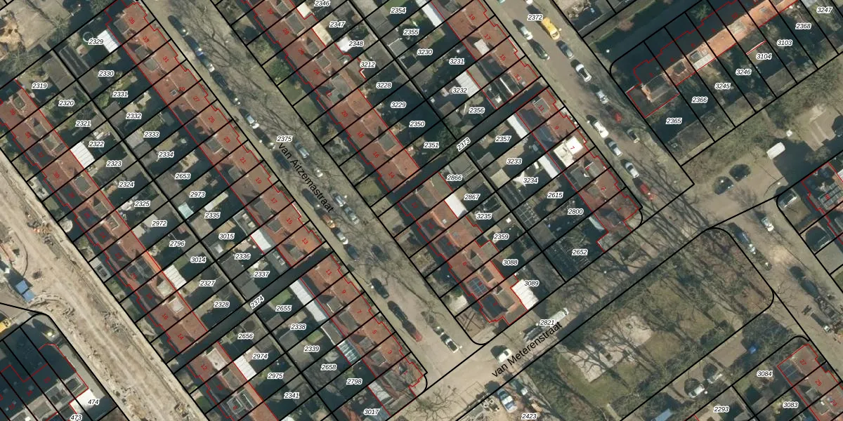 Gebruik de zoekbalk of klik op een perceel voor informatie over de adressen binnen dit perceel.