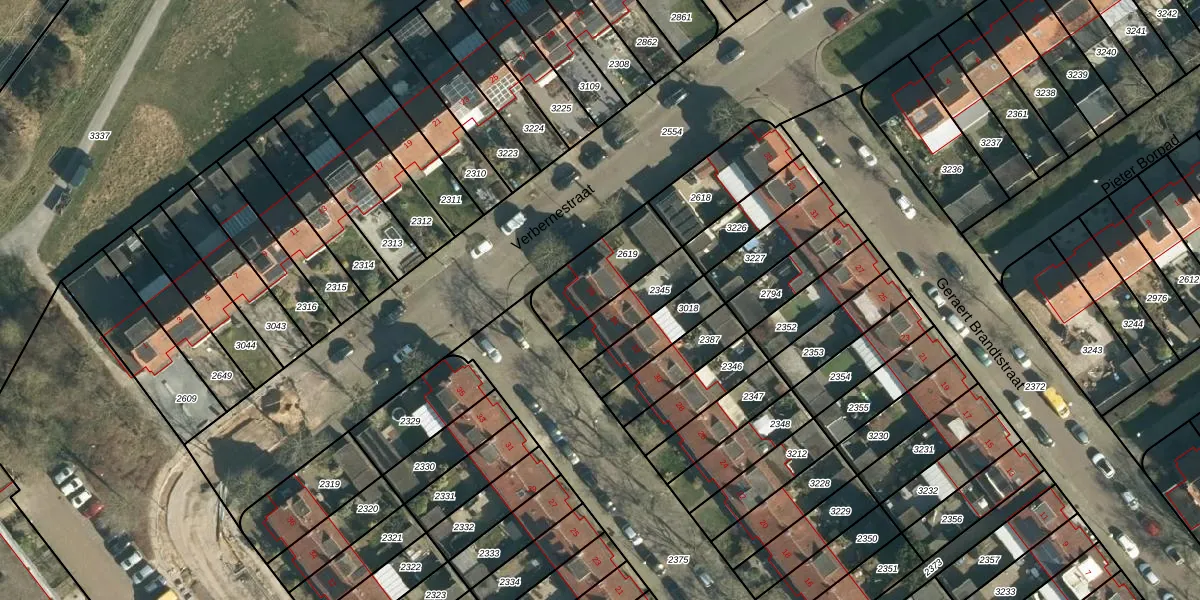 Gebruik de zoekbalk of klik op een perceel voor informatie over de adressen binnen dit perceel.