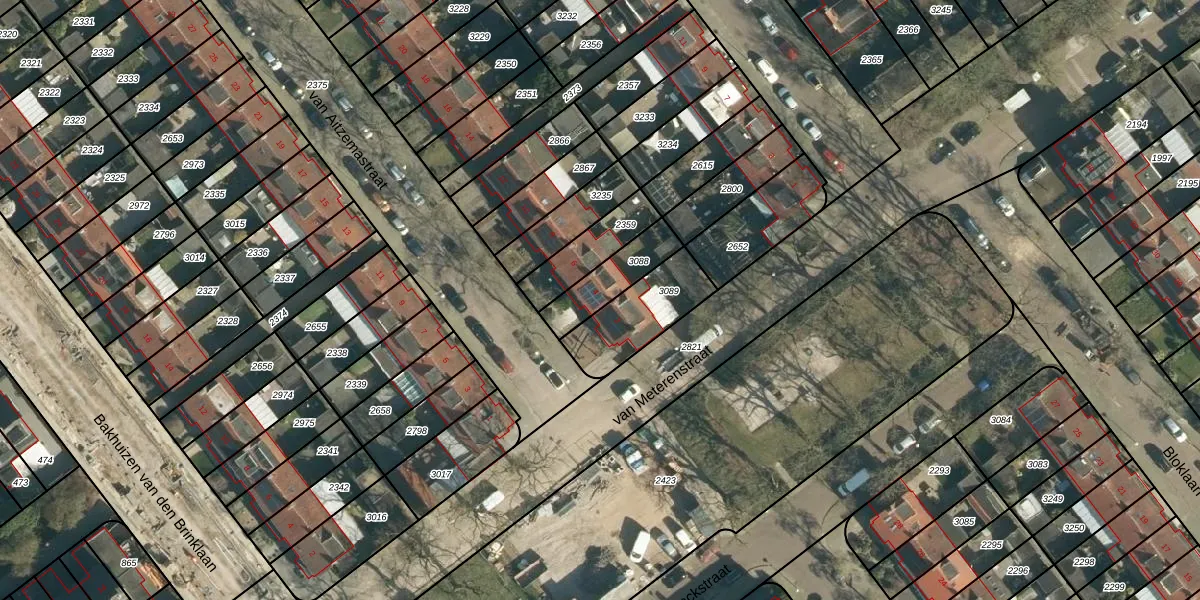 Gebruik de zoekbalk of klik op een perceel voor informatie over de adressen binnen dit perceel.