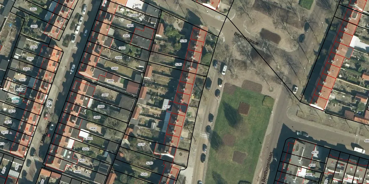 Het perceel waarop van Beethovenlaan 80 staat heeft een oppervlakte van 1389 m². Dit is een zeer groot perceel. De perceeloppervlakte wordt geregistreerd door het Kadaster. Gedetailleerde informatie over de maten van dit perceel kunt u vinden in het rapport Kadastrale kaart met maatvoering van van Beethovenlaan 80.