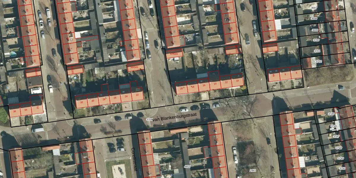 Het perceel waarop van Blankenburgstraat 20 staat heeft een oppervlakte van 5946 m². Dit is een zeer groot perceel. De perceeloppervlakte wordt geregistreerd door het Kadaster. Gedetailleerde informatie over de maten van dit perceel kunt u vinden in het rapport Kadastrale kaart met maatvoering van van Blankenburgstraat 20.