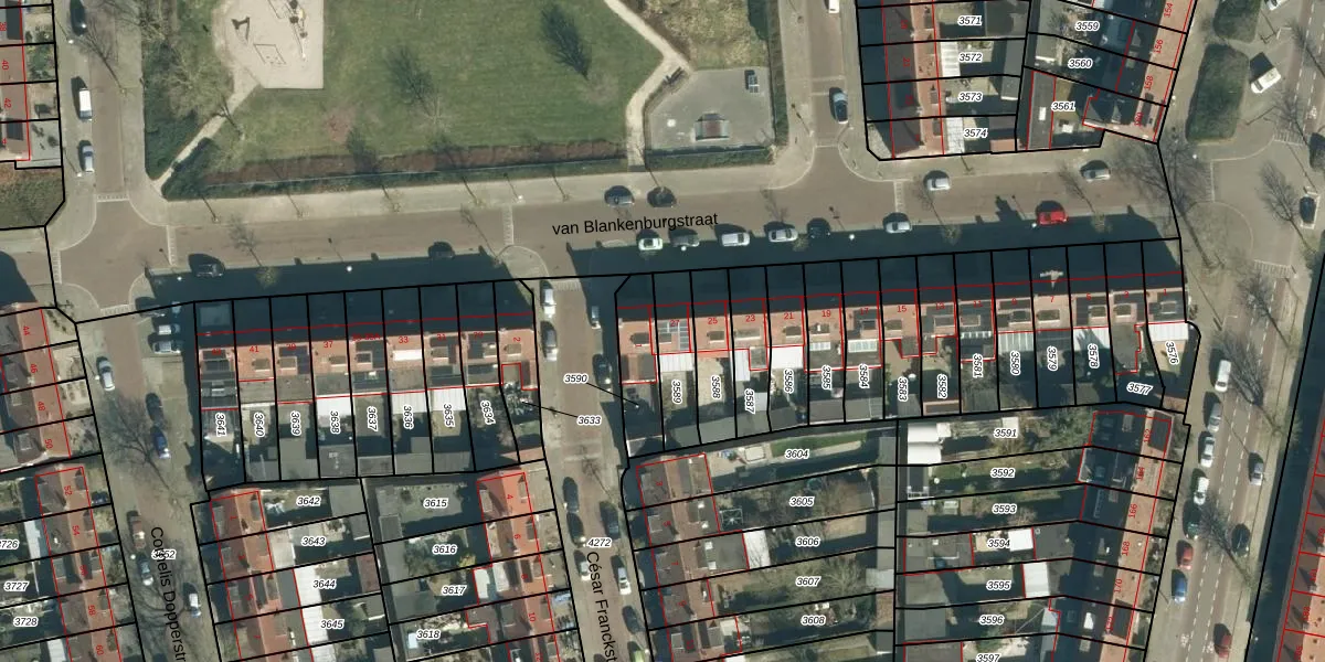 Gebruik de zoekbalk of klik op een perceel voor informatie over de adressen binnen dit perceel.