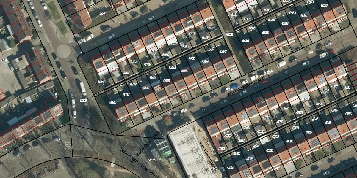 Gebruik de zoekbalk of klik op een perceel voor informatie over de adressen binnen dit perceel.