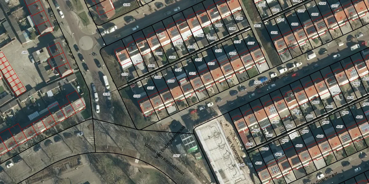 van Bodeghemstraat 9 is gelegen op kadastraal perceel WSL01P3170. Deze kadastrale aanduiding is uniek en wordt gebruikt door het Kadaster om eigendomsrechten en andere zakelijke rechten vast te leggen. Het perceel maakt onderdeel uit van de kadastrale gemeente Woensel.