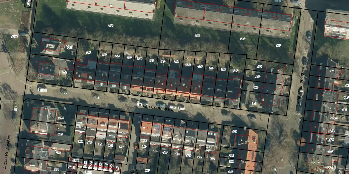 Het perceel waarop van Coothstraat 12 staat heeft een oppervlakte van 213 m². Dit is een middelgroot perceel. De perceeloppervlakte wordt geregistreerd door het Kadaster. Gedetailleerde informatie over de maten van dit perceel kunt u vinden in het rapport Kadastrale kaart met maatvoering van van Coothstraat 12.