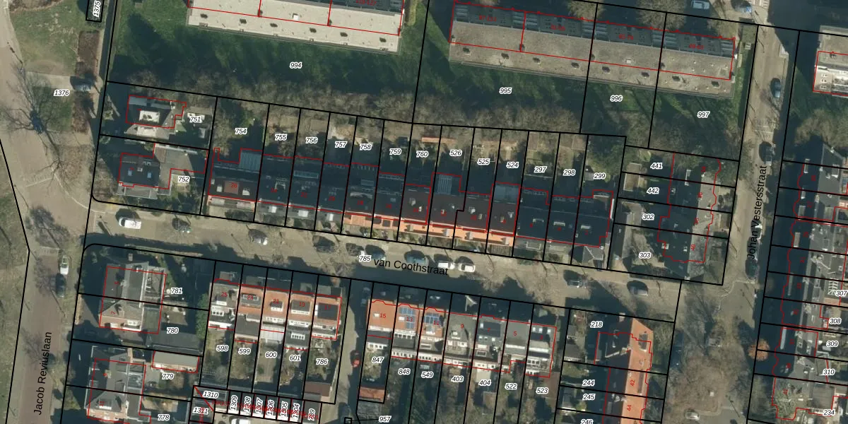 Het perceel waarop van Coothstraat 14 staat heeft een oppervlakte van 188 m². Dit is een middelgroot perceel. De perceeloppervlakte wordt geregistreerd door het Kadaster. Gedetailleerde informatie over de maten van dit perceel kunt u vinden in het rapport Kadastrale kaart met maatvoering van van Coothstraat 14.