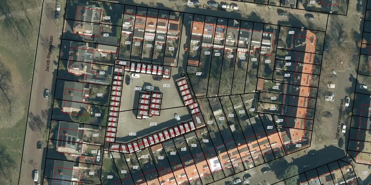 Het perceel waarop van Coothstraat 15-G42 staat heeft een oppervlakte van 15 m². Dit is een klein perceel. De perceeloppervlakte wordt geregistreerd door het Kadaster. Gedetailleerde informatie over de maten van dit perceel kunt u vinden in het rapport Kadastrale kaart met maatvoering van van Coothstraat 15-G42.