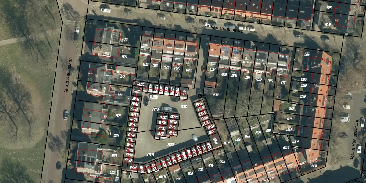 Gebruik de zoekbalk of klik op een perceel voor informatie over de adressen binnen dit perceel.