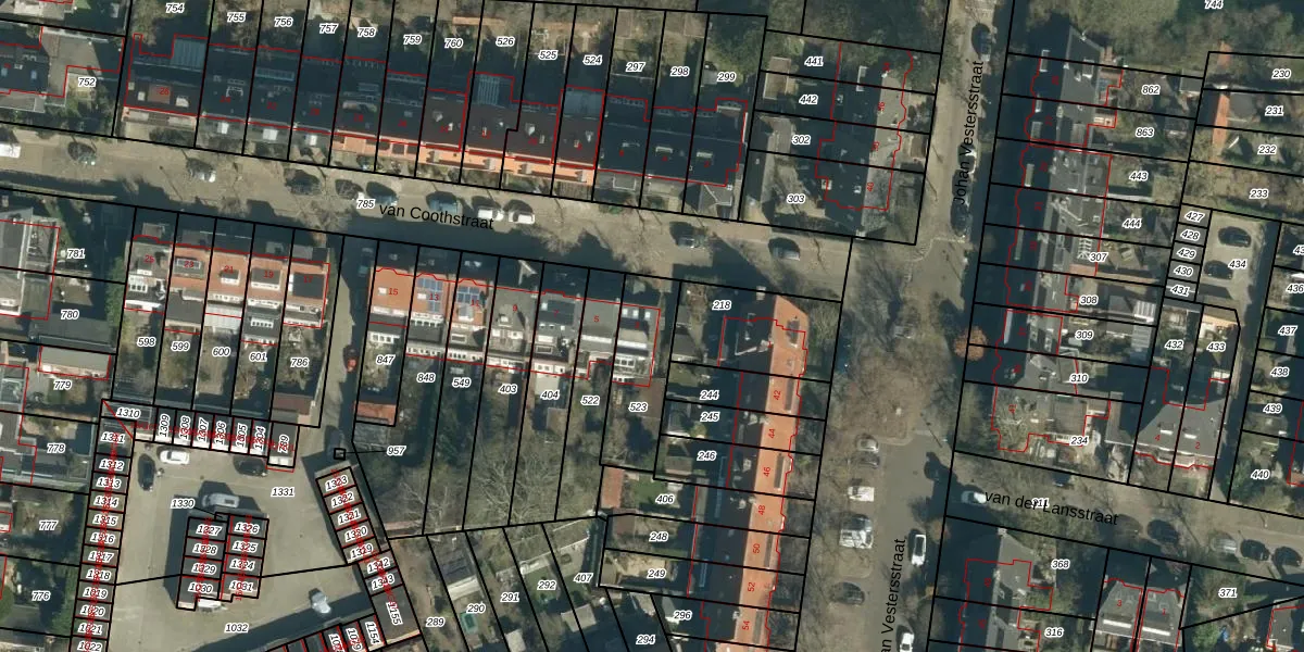 Het perceel waarop van Coothstraat 3 staat heeft een oppervlakte van 255 m². Dit is een middelgroot perceel. De perceeloppervlakte wordt geregistreerd door het Kadaster. Gedetailleerde informatie over de maten van dit perceel kunt u vinden in het rapport Kadastrale kaart met maatvoering van van Coothstraat 3.