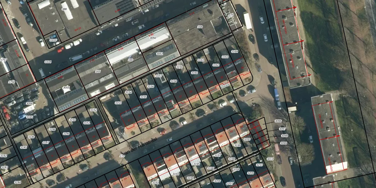 Het perceel waarop van der Hartstraat 29 staat heeft een oppervlakte van 161 m². Dit is een middelgroot perceel. De perceeloppervlakte wordt geregistreerd door het Kadaster. Gedetailleerde informatie over de maten van dit perceel kunt u vinden in het rapport Kadastrale kaart met maatvoering van van der Hartstraat 29.