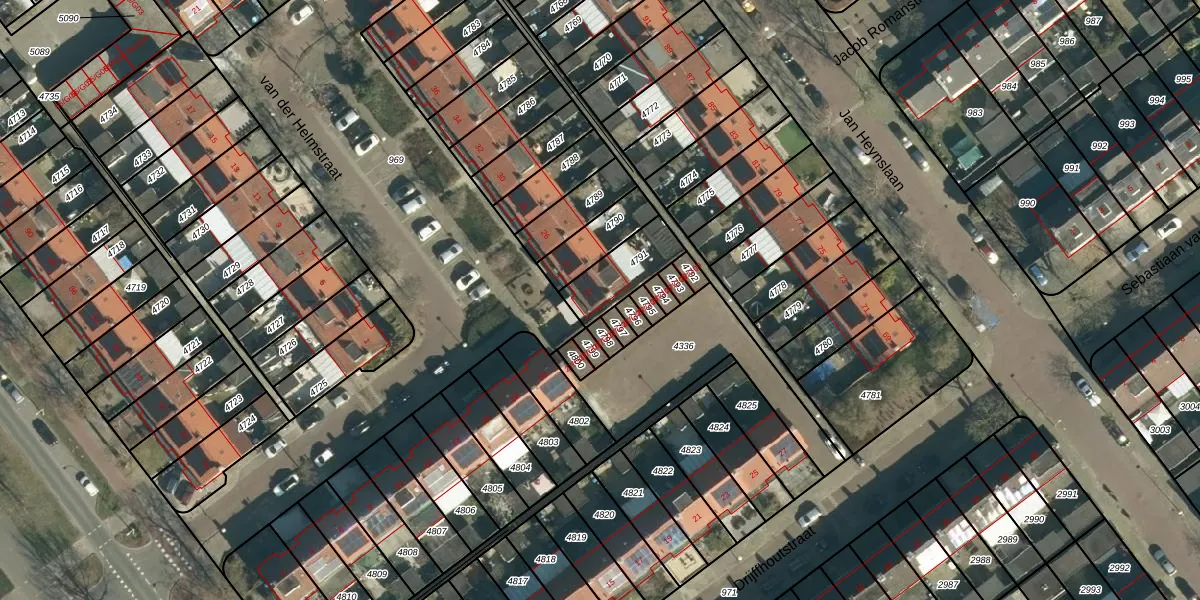 Gebruik de zoekbalk of klik op een perceel voor informatie over de adressen binnen dit perceel.