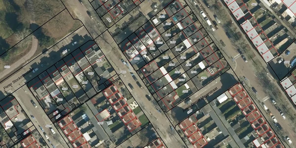 Gebruik de zoekbalk of klik op een perceel voor informatie over de adressen binnen dit perceel.