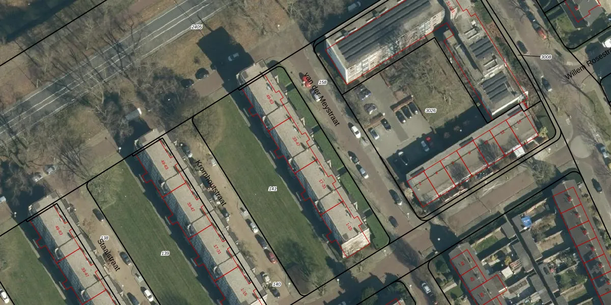 van der Meystraat 33 is gelegen op kadastraal perceel WSL01P141. Deze kadastrale aanduiding is uniek en wordt gebruikt door het Kadaster om eigendomsrechten en andere zakelijke rechten vast te leggen. Het perceel maakt onderdeel uit van de kadastrale gemeente Woensel.