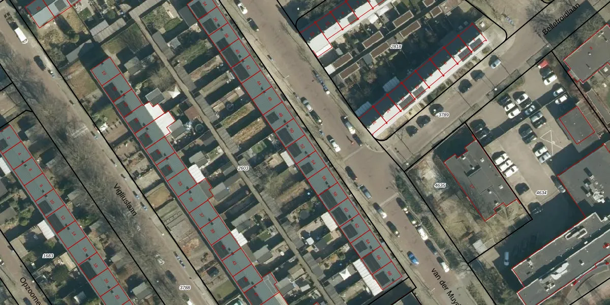 van der Muydenstraat 52 is gelegen op kadastraal perceel STR03C2603. Deze kadastrale aanduiding is uniek en wordt gebruikt door het Kadaster om eigendomsrechten en andere zakelijke rechten vast te leggen. Het perceel maakt onderdeel uit van de kadastrale gemeente Strijp.