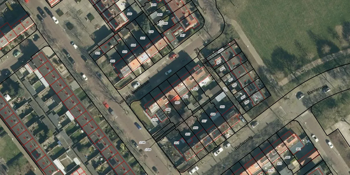 Het perceel waarop van der Werffstraat 8 staat heeft een oppervlakte van 157 m². Dit is een middelgroot perceel. De perceeloppervlakte wordt geregistreerd door het Kadaster. Gedetailleerde informatie over de maten van dit perceel kunt u vinden in het rapport Kadastrale kaart met maatvoering van van der Werffstraat 8.