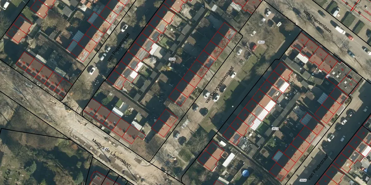 van Druyvesteinstraat 7 is gelegen op kadastraal perceel WSL01G3509. Deze kadastrale aanduiding is uniek en wordt gebruikt door het Kadaster om eigendomsrechten en andere zakelijke rechten vast te leggen. Het perceel maakt onderdeel uit van de kadastrale gemeente Woensel.