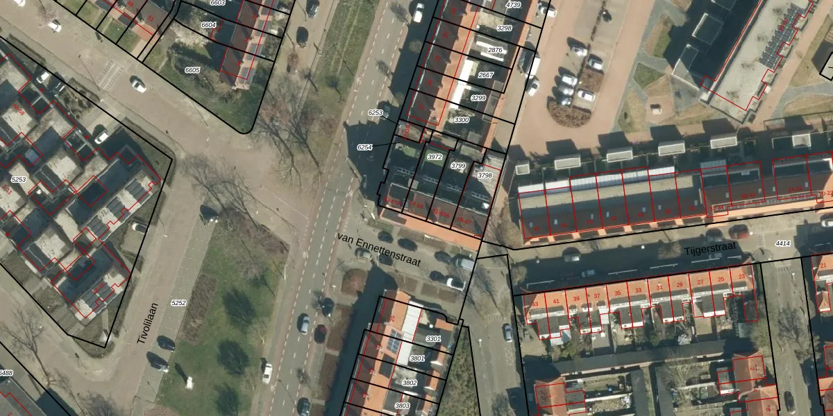 van Ennettenstraat 57 is gelegen op kadastraal perceel STM00E3972. Deze kadastrale aanduiding is uniek en wordt gebruikt door het Kadaster om eigendomsrechten en andere zakelijke rechten vast te leggen. Het perceel maakt onderdeel uit van de kadastrale gemeente Stratum.