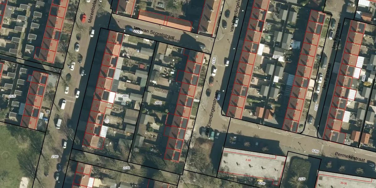 Het perceel waarop van Everdingenstraat 36 staat heeft een oppervlakte van 1982 m². Dit is een zeer groot perceel. De perceeloppervlakte wordt geregistreerd door het Kadaster. Gedetailleerde informatie over de maten van dit perceel kunt u vinden in het rapport Kadastrale kaart met maatvoering van van Everdingenstraat 36.