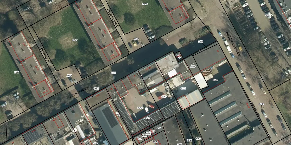 van Kanstraat 1-B is gelegen op kadastraal perceel STR03C3030. Deze kadastrale aanduiding is uniek en wordt gebruikt door het Kadaster om eigendomsrechten en andere zakelijke rechten vast te leggen. Het perceel maakt onderdeel uit van de kadastrale gemeente Strijp.