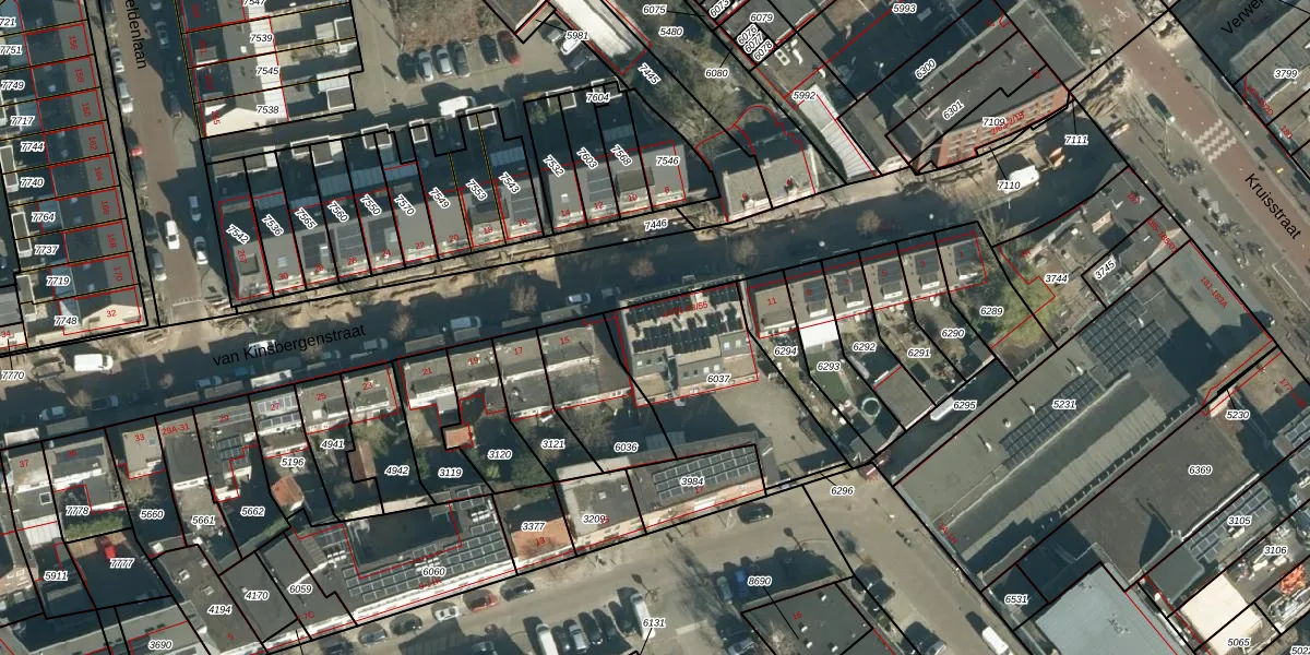 van Kinsbergenstraat 13-27 is gelegen op kadastraal perceel WSL01G6037. Deze kadastrale aanduiding is uniek en wordt gebruikt door het Kadaster om eigendomsrechten en andere zakelijke rechten vast te leggen. Het perceel maakt onderdeel uit van de kadastrale gemeente Woensel.