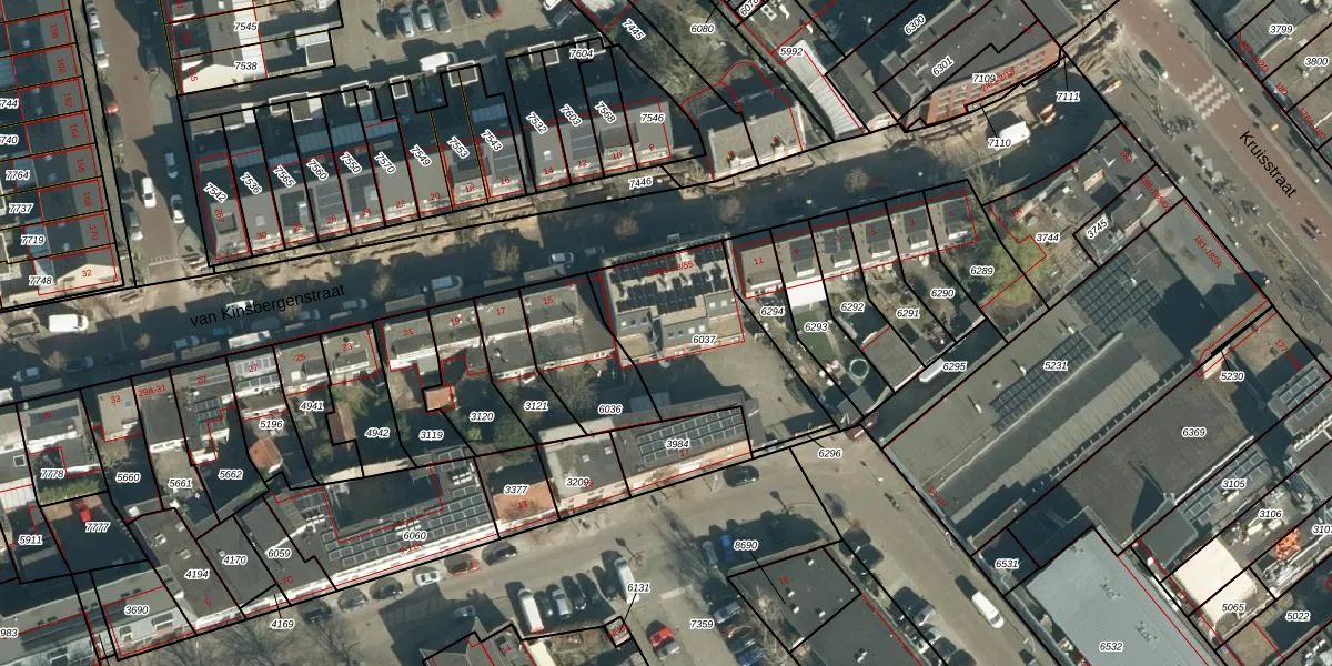 van Kinsbergenstraat 13-33 is gelegen op kadastraal perceel WSL01G6037. Deze kadastrale aanduiding is uniek en wordt gebruikt door het Kadaster om eigendomsrechten en andere zakelijke rechten vast te leggen. Het perceel maakt onderdeel uit van de kadastrale gemeente Woensel.