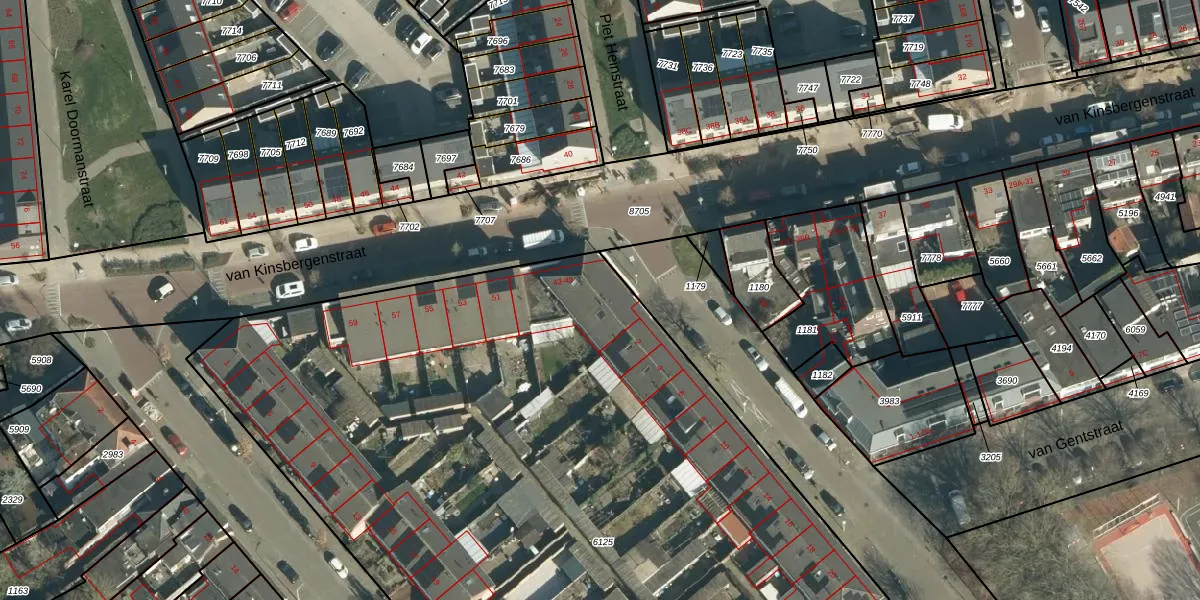 Het perceel waarop van Kinsbergenstraat 45 staat heeft een oppervlakte van 6116 m². Dit is een zeer groot perceel. De perceeloppervlakte wordt geregistreerd door het Kadaster. Gedetailleerde informatie over de maten van dit perceel kunt u vinden in het rapport Kadastrale kaart met maatvoering van van Kinsbergenstraat 45.
