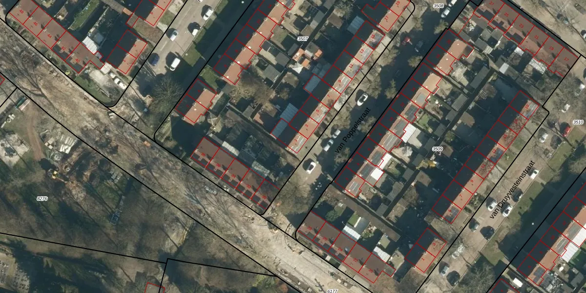 van Poppelstraat 1 is gelegen op kadastraal perceel WSL01G3507. Deze kadastrale aanduiding is uniek en wordt gebruikt door het Kadaster om eigendomsrechten en andere zakelijke rechten vast te leggen. Het perceel maakt onderdeel uit van de kadastrale gemeente Woensel.