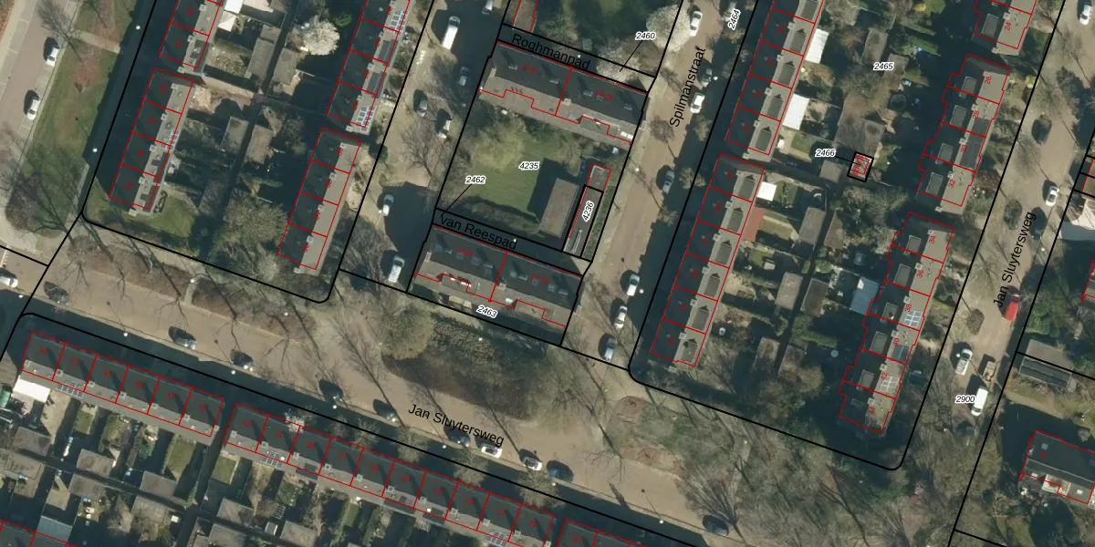 Het perceel waarop van Reespad 18 staat heeft een oppervlakte van 395 m². Dit is een groot perceel. De perceeloppervlakte wordt geregistreerd door het Kadaster. Gedetailleerde informatie over de maten van dit perceel kunt u vinden in het rapport Kadastrale kaart met maatvoering van van Reespad 18.