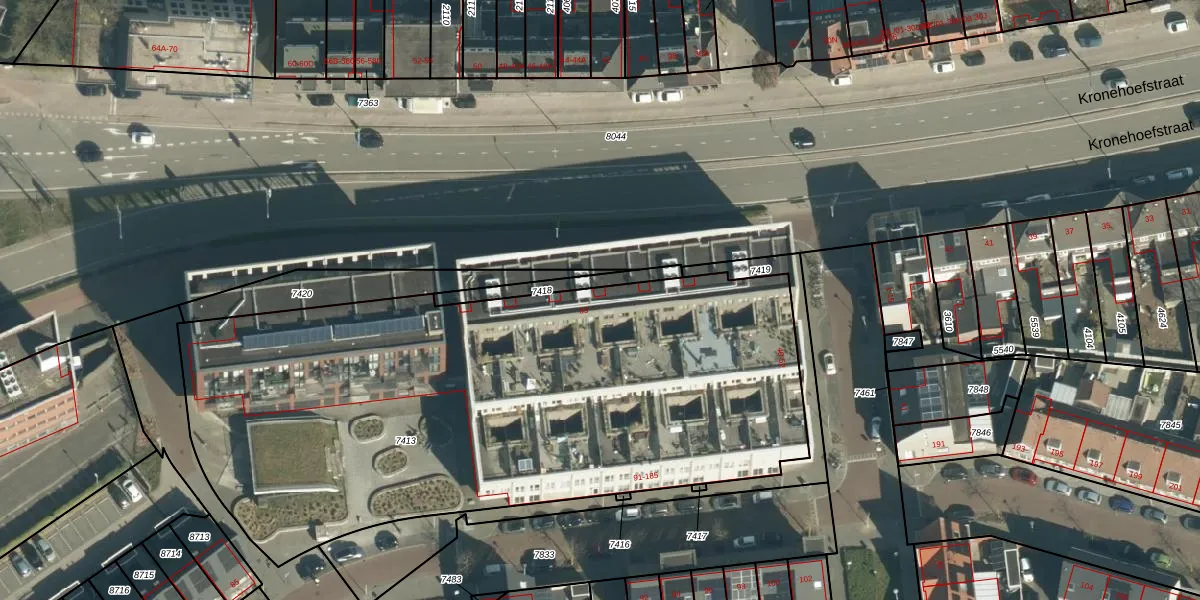 Het adres is gelegen op perceel 7413 in de sectie G en de kadastrale gemeente Woensel. De kadastrale aanduiding is aldus WSL01-G-7413. De gemiddelde perceeloppervlakte in de kadastrale gemeente Woensel is 1039,1 m². Dit perceel is met zijn 3580 m² dus groter dan gemiddeld. De grootste perceeloppervlakte in de kadastrale gemeente is 74,9 ha. De kleinste oppervlakte bedraagt 0 m². Er zijn 56 adressen aanwezig op het perceel. De huidige grenzen van het perceel zijn digitaal in de Basisregistratie Kadaster (BRK) geregistreerd op 13-11-2017.