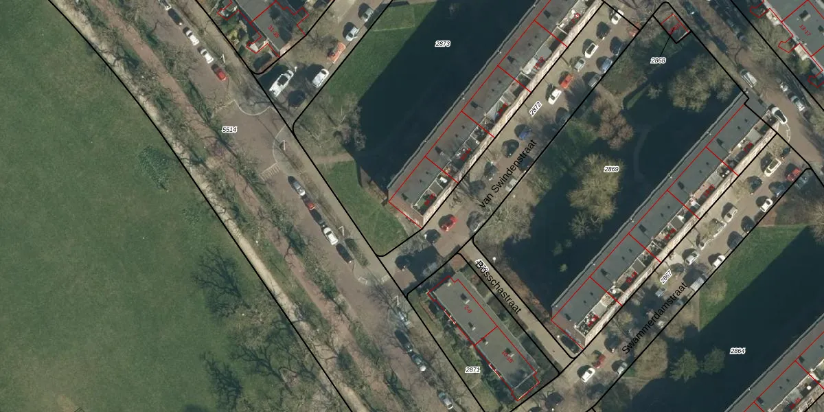 Het perceel waarop van Swindenstraat 76 staat heeft een oppervlakte van 3206 m². Dit is een zeer groot perceel. De perceeloppervlakte wordt geregistreerd door het Kadaster. Gedetailleerde informatie over de maten van dit perceel kunt u vinden in het rapport Kadastrale kaart met maatvoering van van Swindenstraat 76.
