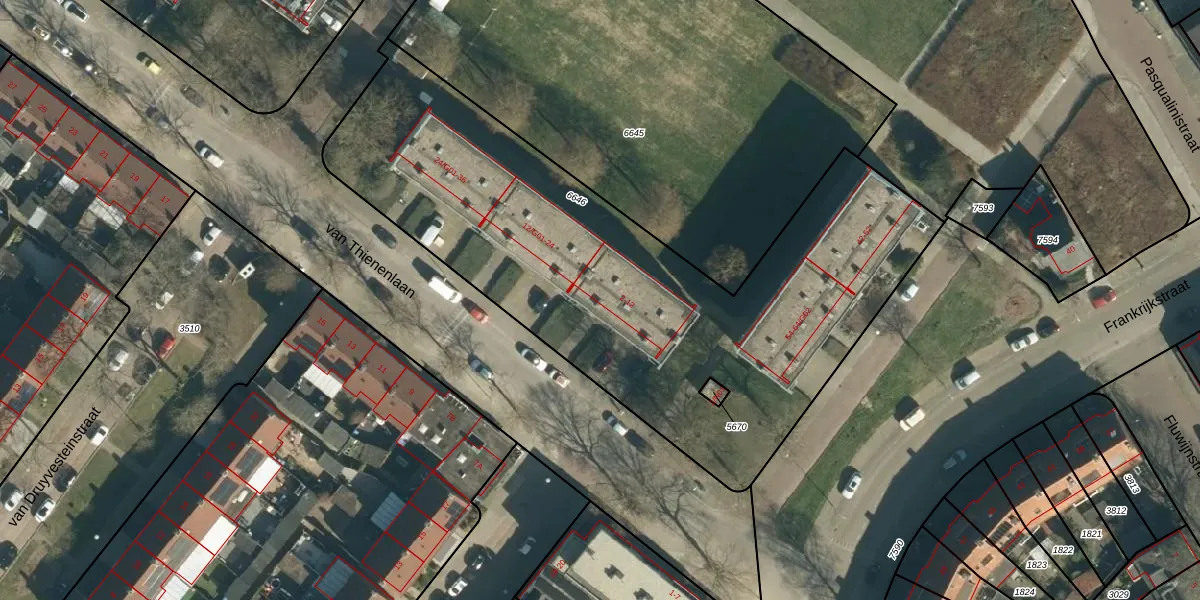 van Thienenlaan 10 is gelegen op kadastraal perceel WSL01G6646. Deze kadastrale aanduiding is uniek en wordt gebruikt door het Kadaster om eigendomsrechten en andere zakelijke rechten vast te leggen. Het perceel maakt onderdeel uit van de kadastrale gemeente Woensel.